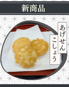 香ばしく揚げた あげせん に、 こしょう がピリッとあとを引くお煎餅です。